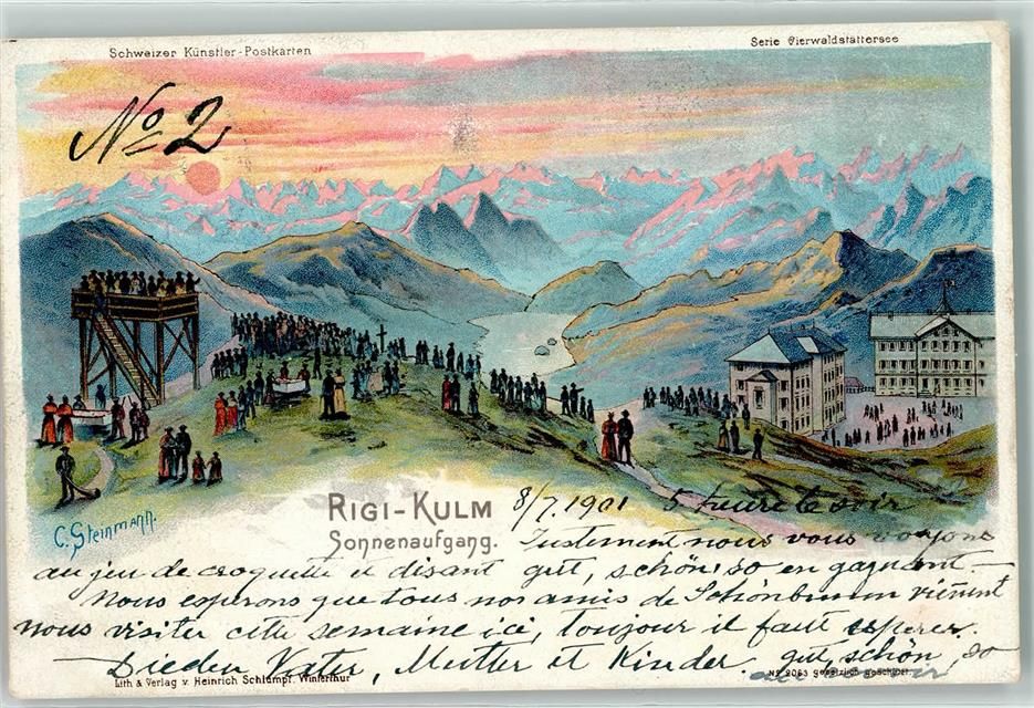 Rigi Kulm, Sonnenaufgang sign C. Steinmann Schweizer Künstlerpostkarten Serie Vierwaldstättersee