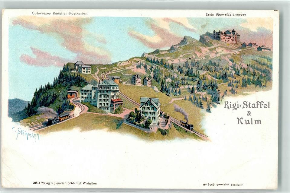 Rigi Staffel, Bergbahn Kulm sign C. Steinmann Schweizer Künstlerkarten Serie Vierwaldstättersee