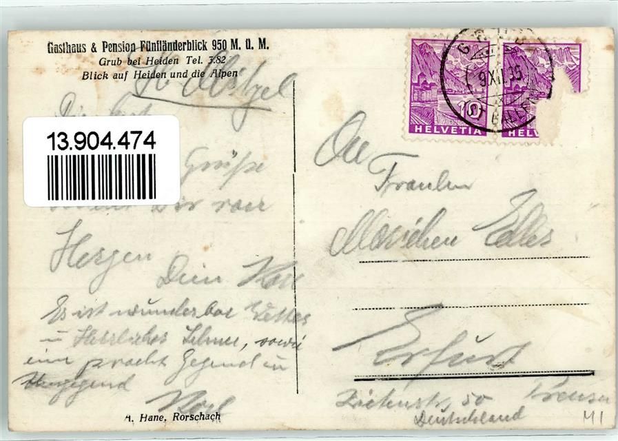 Grub AR, Fünfländerblick Gasthaus u. Pension Blick auf Heiden und die Alpen