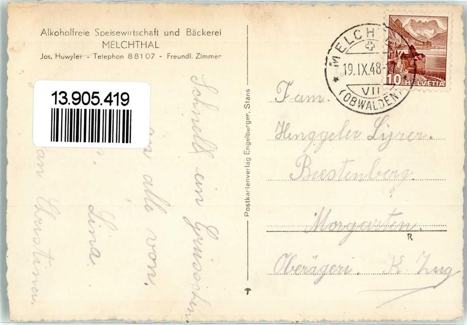 Melchtal, Alkoholfreies Gasthaus Bäckerei Melchthal Jos. Huwyler