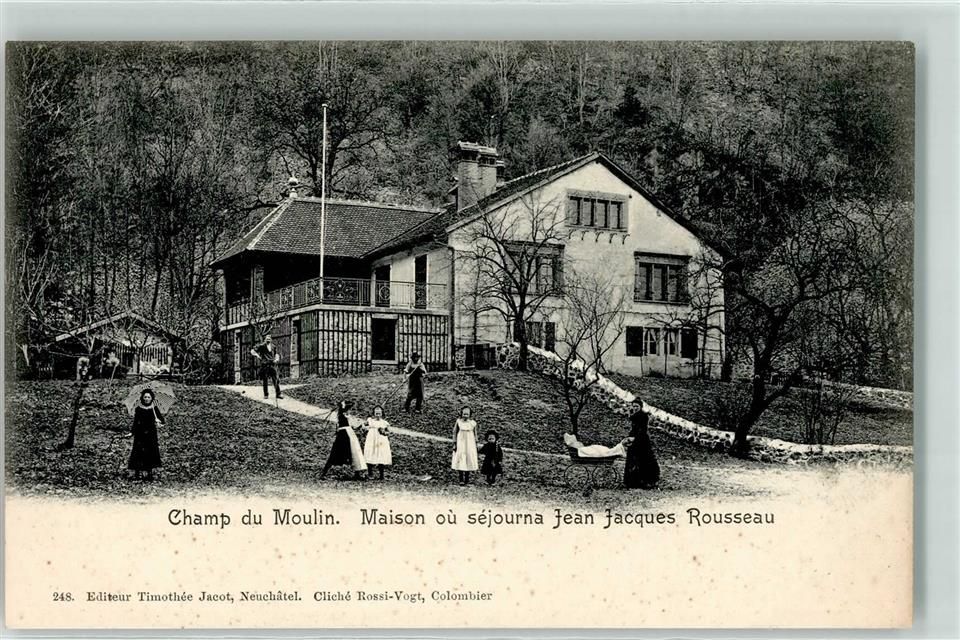 Champ-du-Moulin, Maison ou sejourna Jean Jaques Rousseau Kinder Frau Tracht Kinderwagen