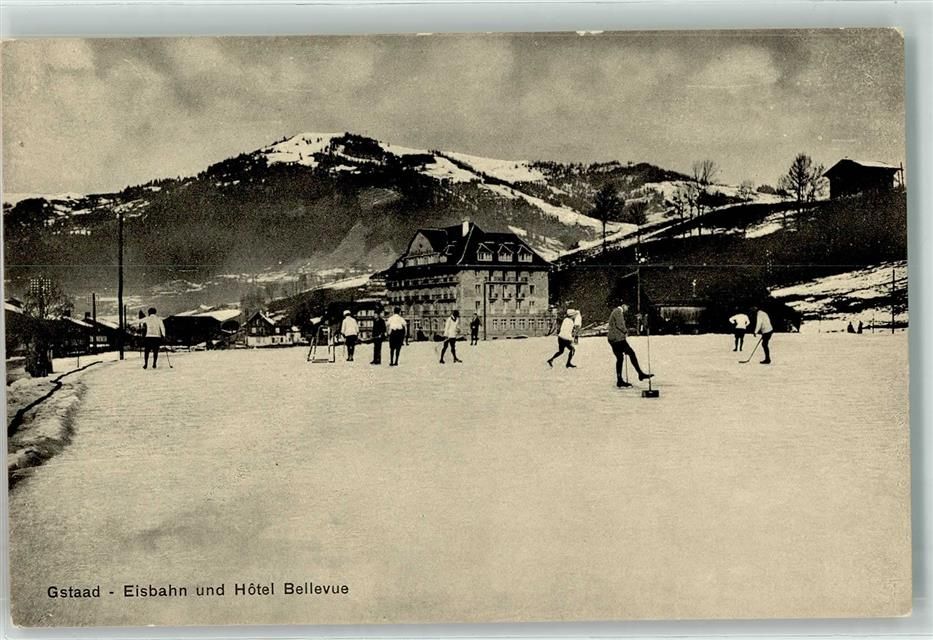 Gstaad, Winter Eisbahn und Hotel Bellevue Eishockey