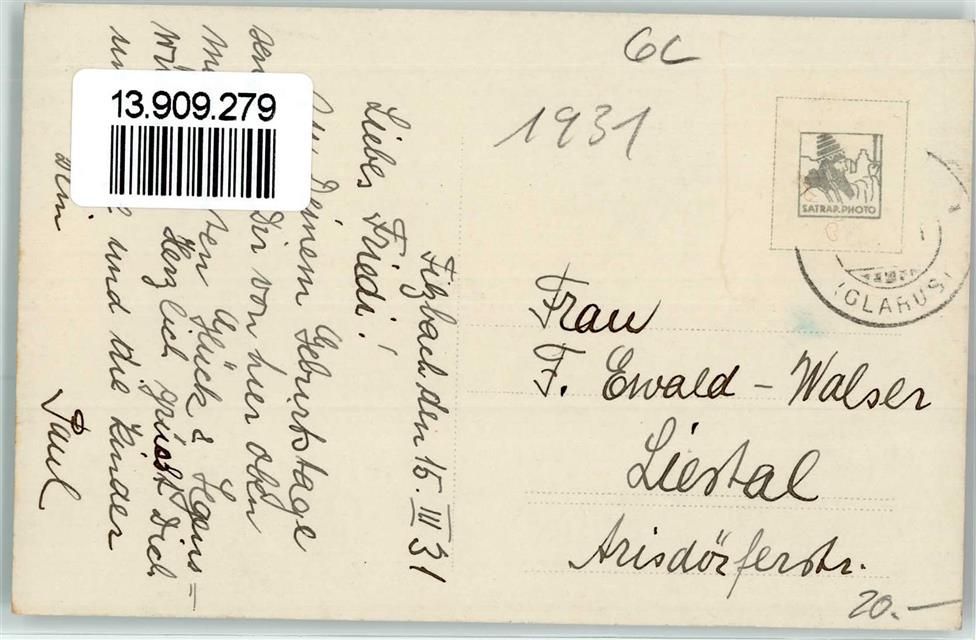 Filzbach, Winter Ort handschriftlich