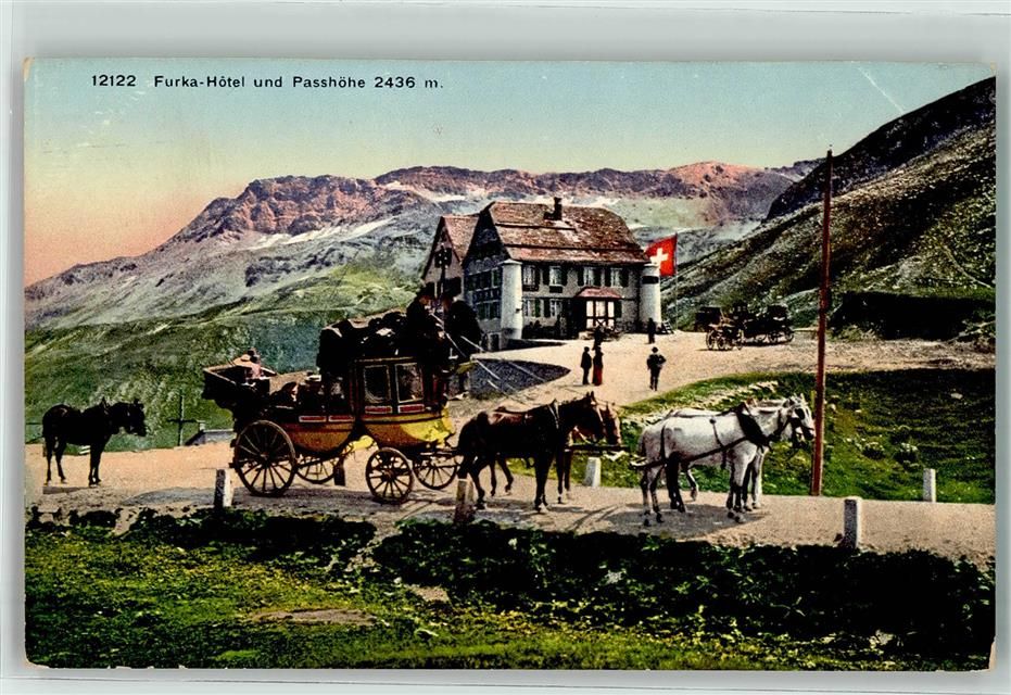 Furka, Furka Hotel und Passhöhe Postkutsche