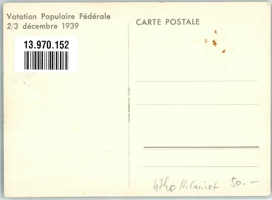 , sign A. Caricet Votation Populaire Federale Dezember 1939 Laterne