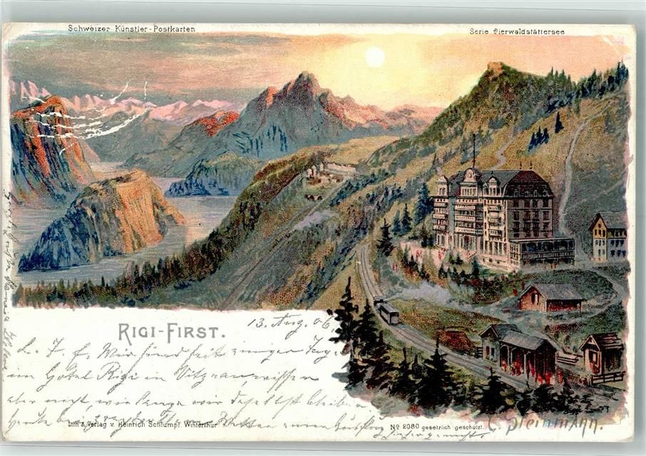 Rigi First, sign. Seinmann ,C. Künstlerpostkarte Hotel Bergbahn