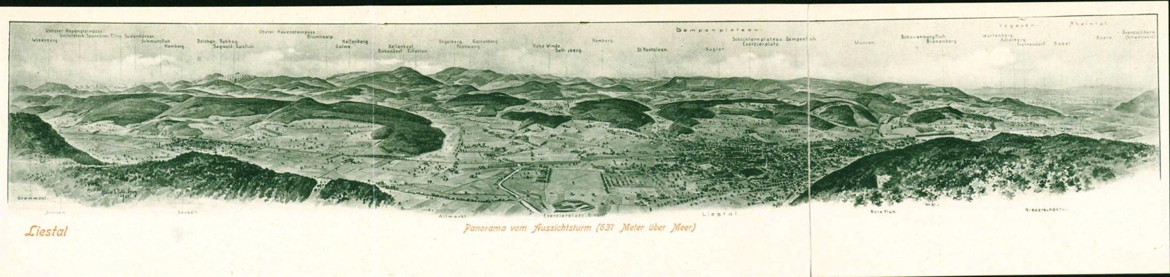 Liestal, Panorama vom Aussichtsturm, 1 Faltung mit Klebeband