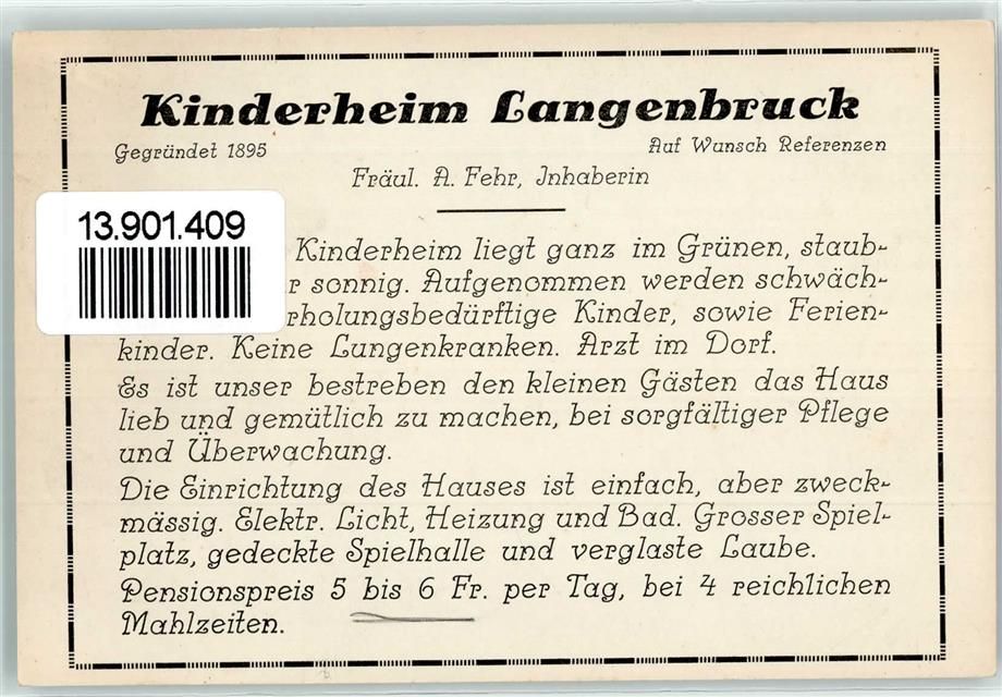 Langenbruck, Kinderheim Frl. A. Fehr Inhaberin