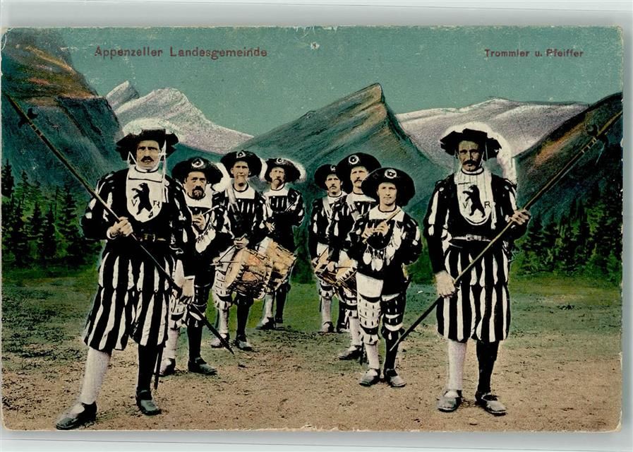 Appenzell Trommler Pfeiffer Landesgemeinde Motiv Schweiz Gebrauchsspuren
