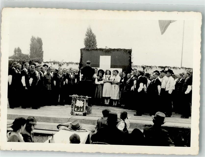 Arbon, Chor in Tracht vor Schweizer Fahne auf der Bühne Ort lt. Fotograf Burkhardt
