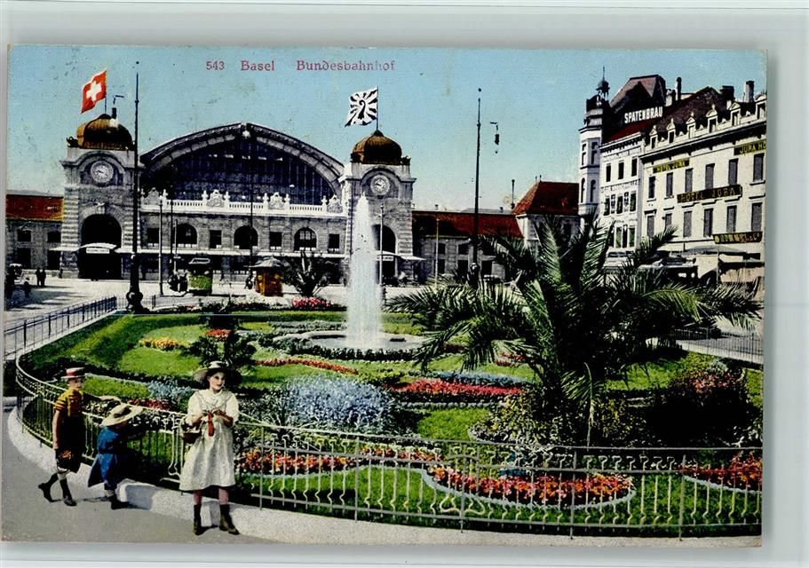 Basel Bâle Bundesbahnhof Wappen Springbrunnen Bahnhof Schweiz 1913