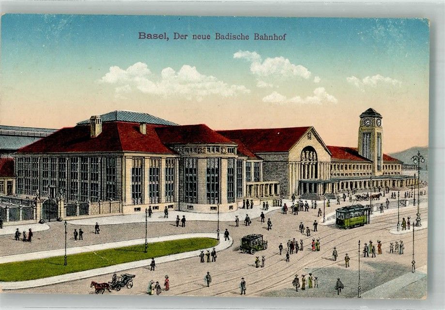 Basel Bâle Neuer Badischer Bahnhof Auto Straßenbahn Bahnhof Schweiz Foto AK