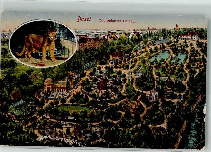 Basel Bâle Vogelschau Puma Zoo Künstlerkarte