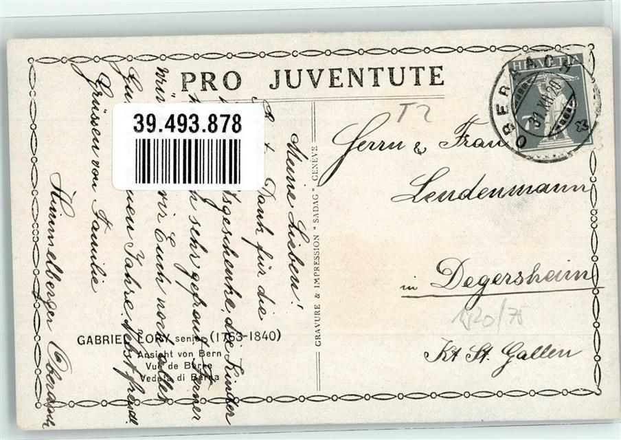 Bern Berne Ansicht von Bern sign. G. Lory senior Nr. 75 Hund Pro Juventute Schweiz 1920 Künstlerkarte