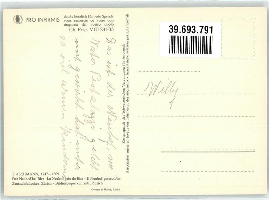 Birr sign. Aschmann Neuhof Pro Infirmis Schweiz Künstlerkarte