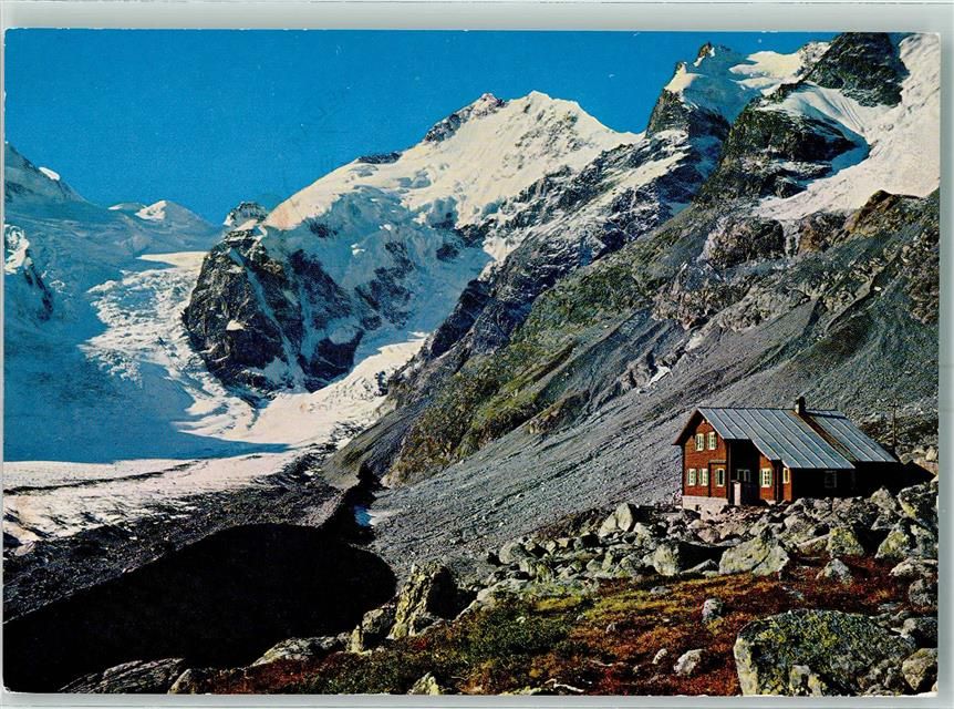 Bovalhütte 1971 - mit Biancograt Piz Bernina und Crast Agüzza