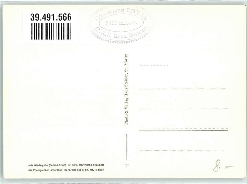Bovalhütte - Verlag u. Fotograf Albert Steiner Hüttenstempel Bovalhütte
