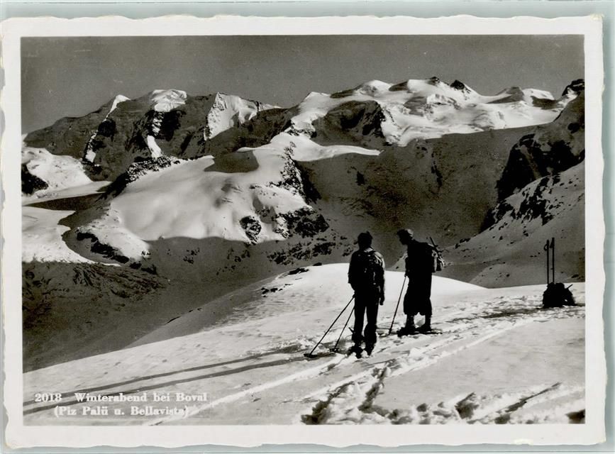 Bovalhütte - Winterabend Piz Palü und Bellavista Winter Skifahrer