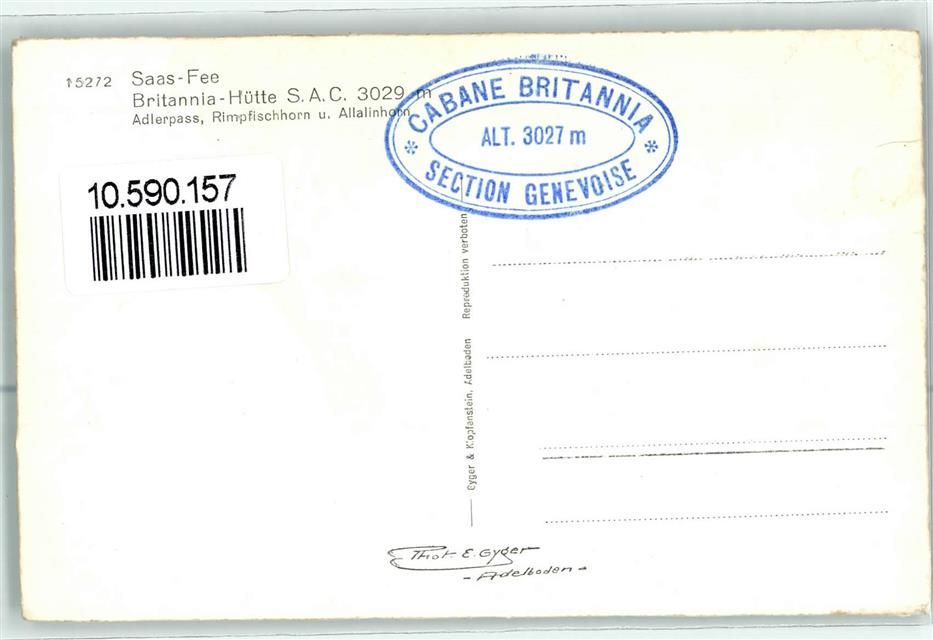 Britanniahütte, Adlerpass Rimpfischhorn Allalinhorn Hüttenstempel