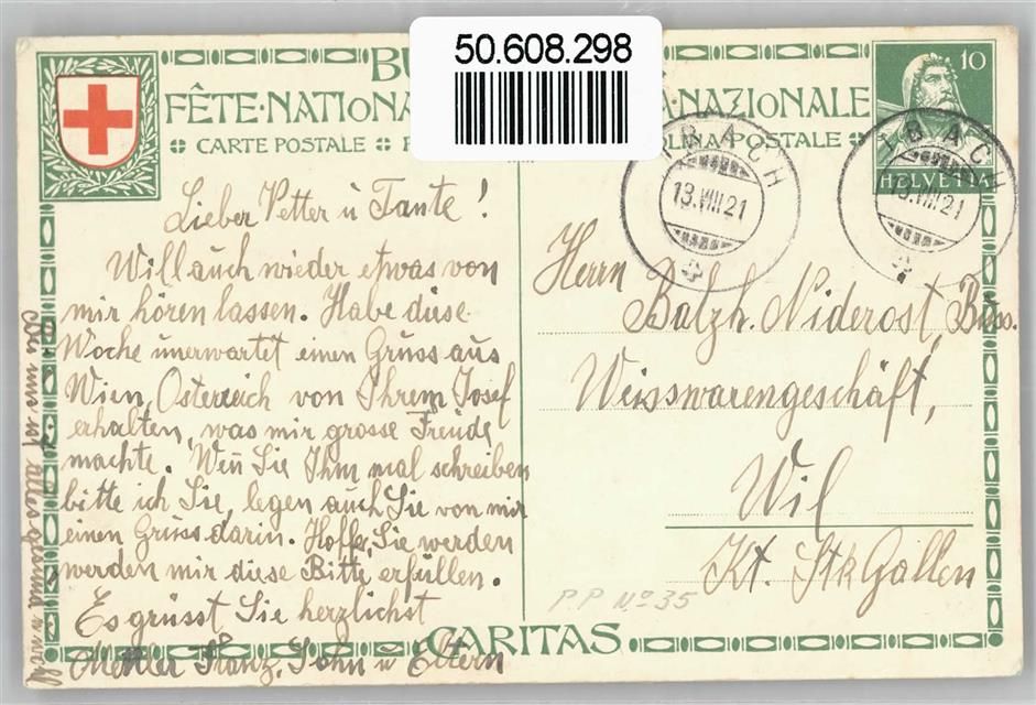 Bundesfeier Ganzsachen Schweiz Künstlerkarte