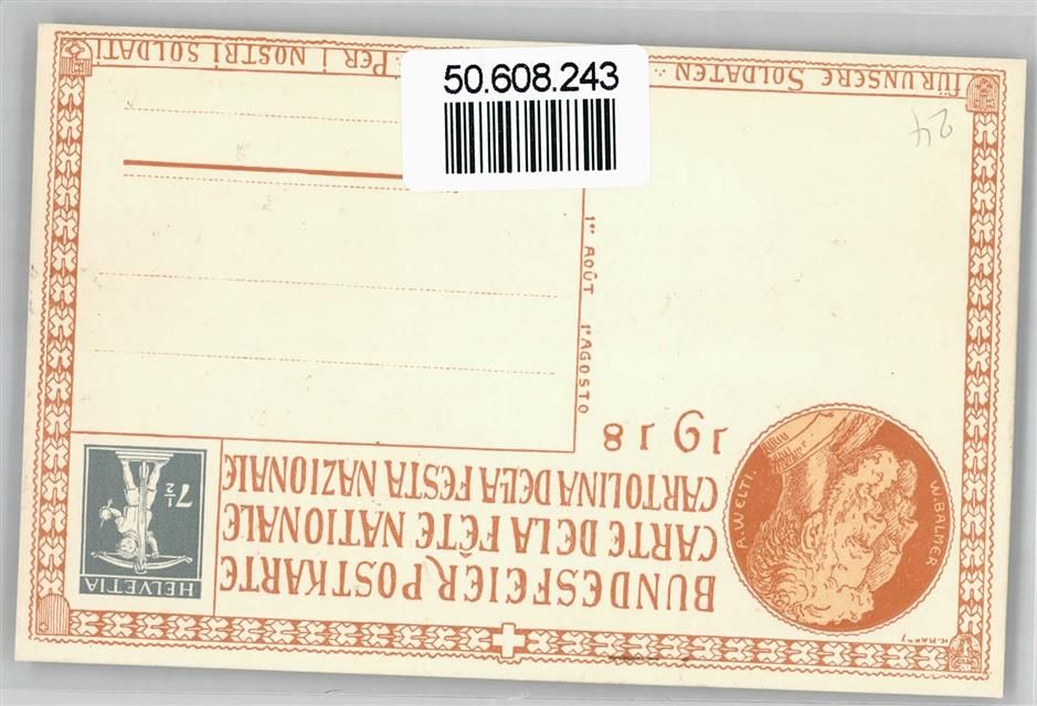 Bundesfeier Ganzsachen Schweiz Künstlerkarte