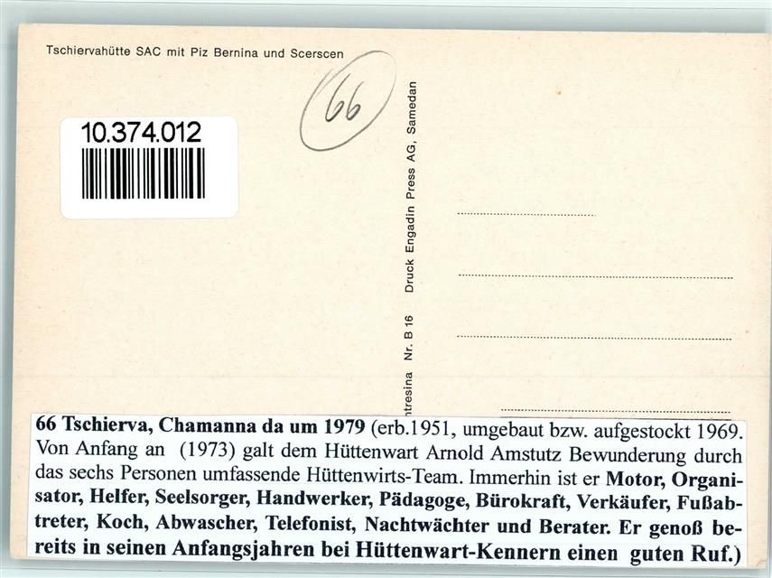 Chamanna da Tschierva, Beschreibung aufgeklebt
