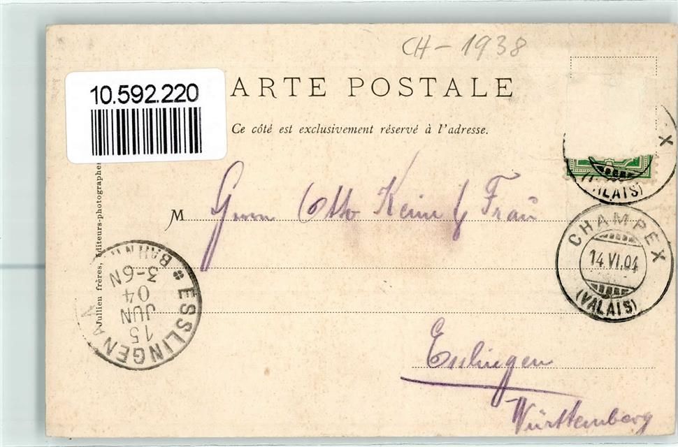 Champex 1904 Gebrauchsspuren Familie in Ruderboot