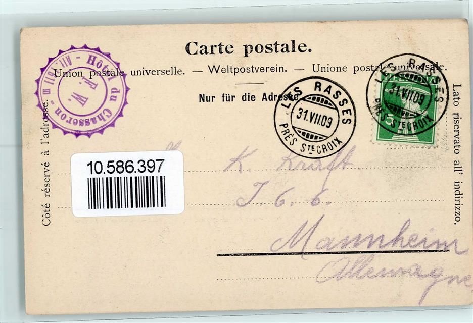 Chasseron 1909 - Hotel du Chasseron 1611m Fahne