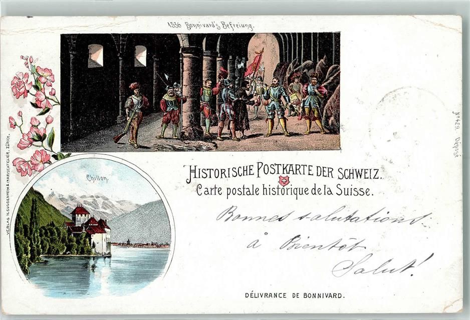 Chillon, Historische Postkarte Bonnivards Befreiung