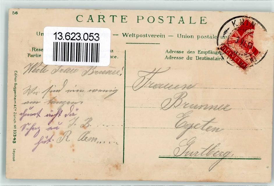 Chrüzegg Prägedruck Tracht Alphorn Gasthaus Lithographie
