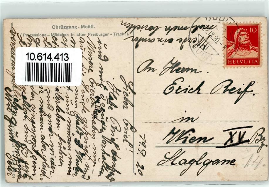 , Chrüzfang Meitli Prozessions Mädchen in alter Freiburger Tracht