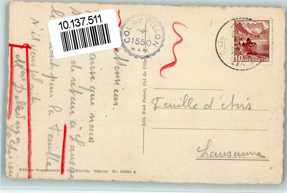 Col du Pillon, Nr. 15090 A Verlag Guggenheim A - Col du Pillon et Scex Rouge