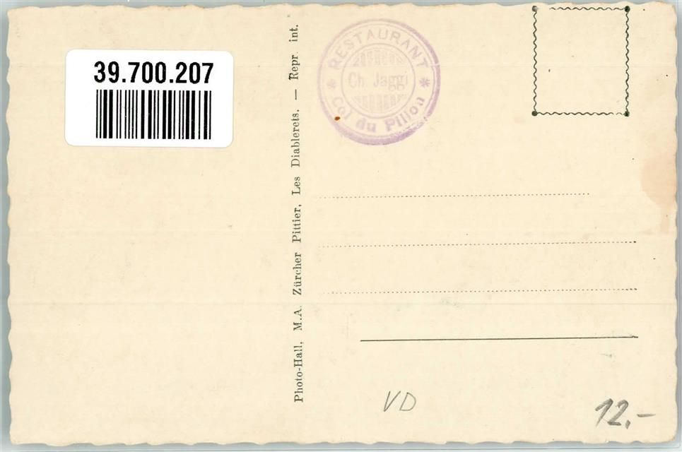 Col du Pillon Foto AK Gasthaus Scex Rouge Hüttenstempel