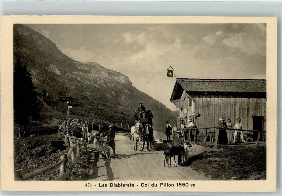 Diablerets - Col du Pillon Kutsche Fahrrad Fahne