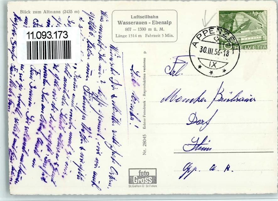 Ebenalp - Berggasthaus Ebenalp mit Luftseilbahn Wasserauen-Ebenalp Blick zum Altmann