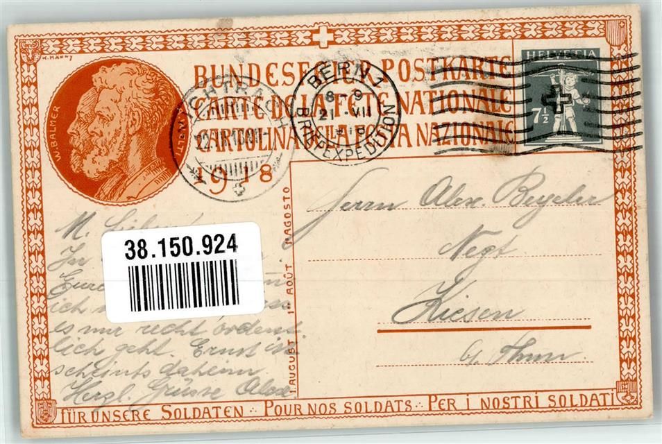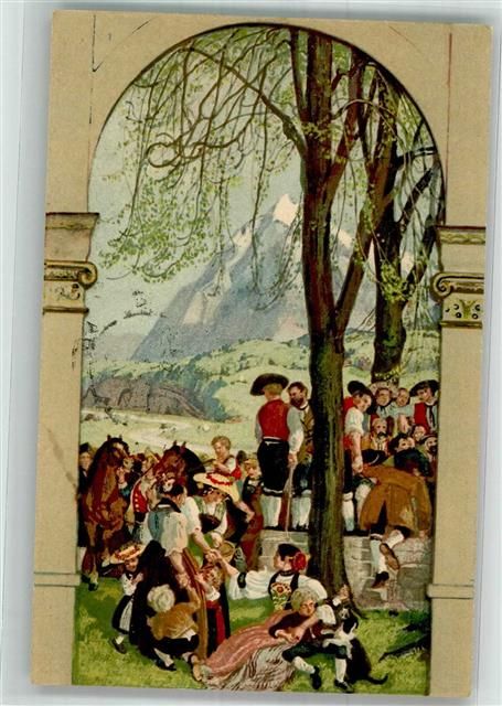 Ein schweizer Dorffest 1. August Für unsere Soldaten Bundesfeier Ganzsachen Schweiz 1918 Künstlerkarte