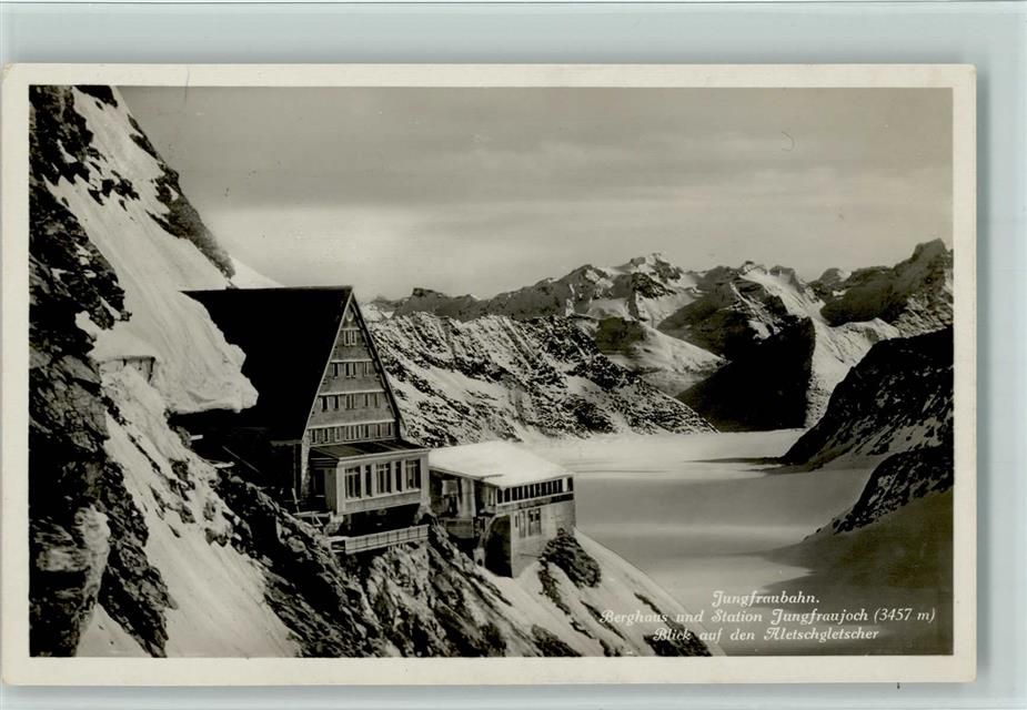 Eismeer Jungfraubahn - Berghaus und Sation Jungfraujoch Blick auf den Aletschgletscher