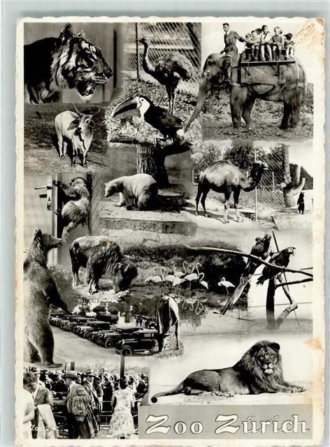 Elefant Bär Löwe Tiger Zoo 1943 Fotomontage AK
