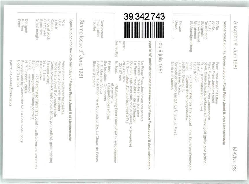 Elisabeth Prinzessin von und zu Liechtenstein Erzherzogin von Österreich Ausgabe 9. Juni 1981 Adel Liechtenstein