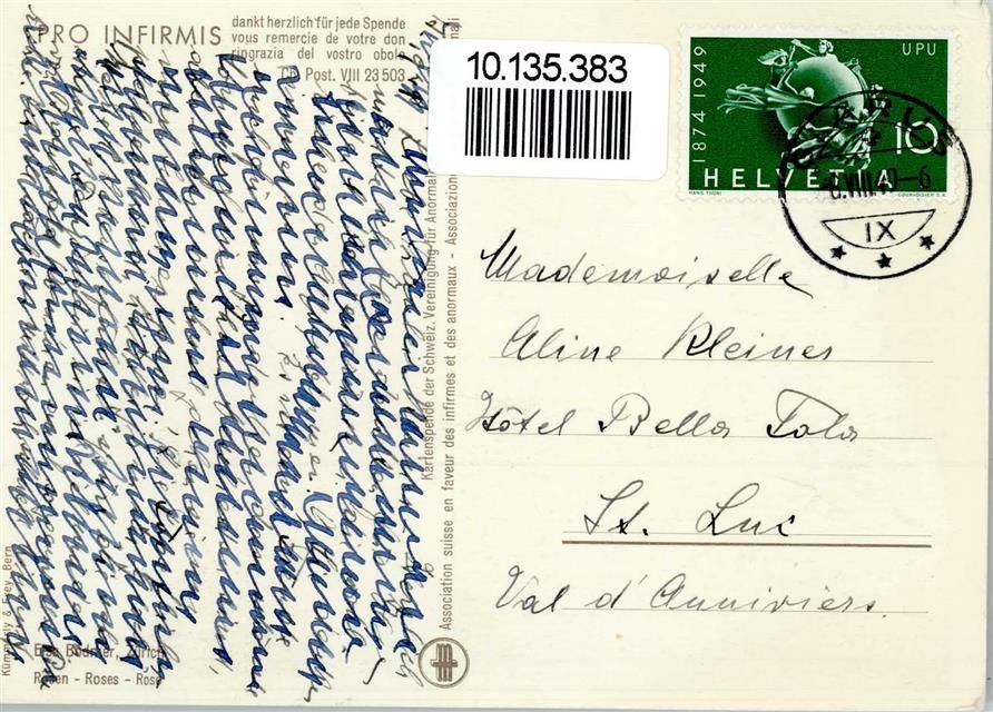 Emil Bodmer - Blumenvase mit Rosen Pro Infirmis Schweiz 1940