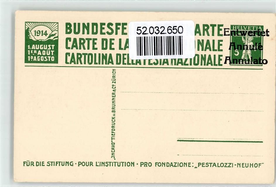 entwertet 1.August Bundesfeier / Pro Patria Schweiz