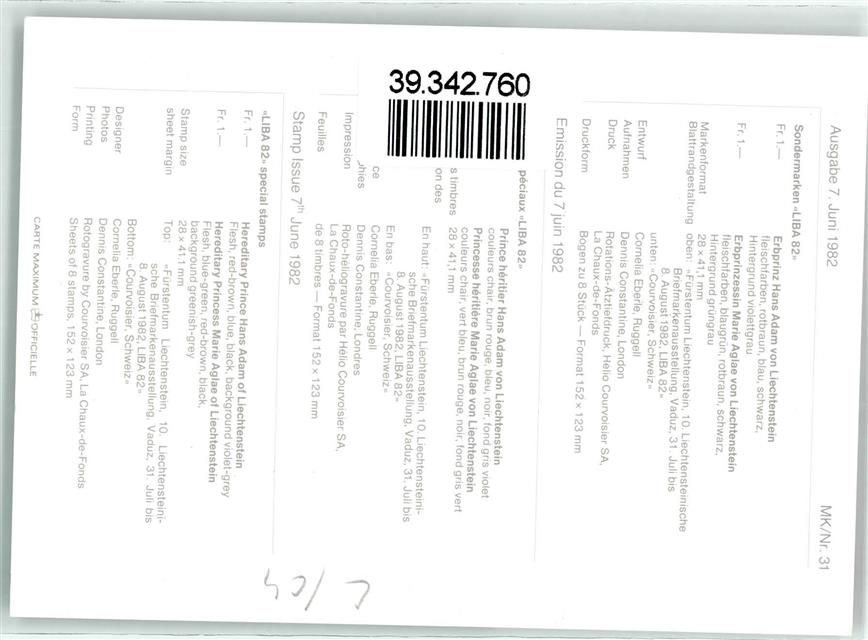 Erbprinz Hans Adam von Liechtenstein Ausgabe 7. Juni 1982 Adel Liechtenstein
