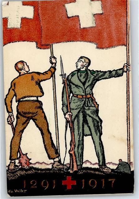 Fahnenträger , sign. Ed. Vallet Bundesfeier Ganzsachen Schweiz Künstlerkarte