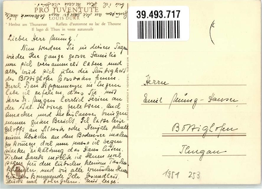 Feldmeilen sign. Louis Künstlerkarte Thunersee Ort lt. Verlag Pro Juventute Schweiz