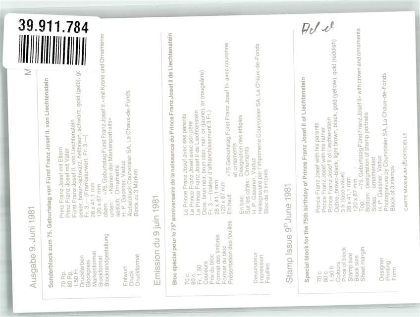, Franz Josef II Regierender Fürst Ausgabetag 9.6.1981