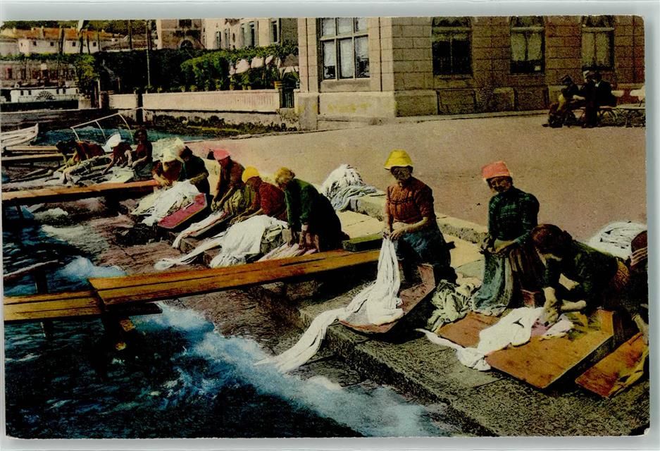 , Frauen beim Wäsche waschen am See