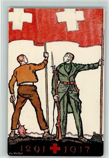Für das Rote Kreuz - Ganzsache Erhaltung I AK Bundesfeier / Pro Patria Schweiz Lithographie / Künstlerkarte