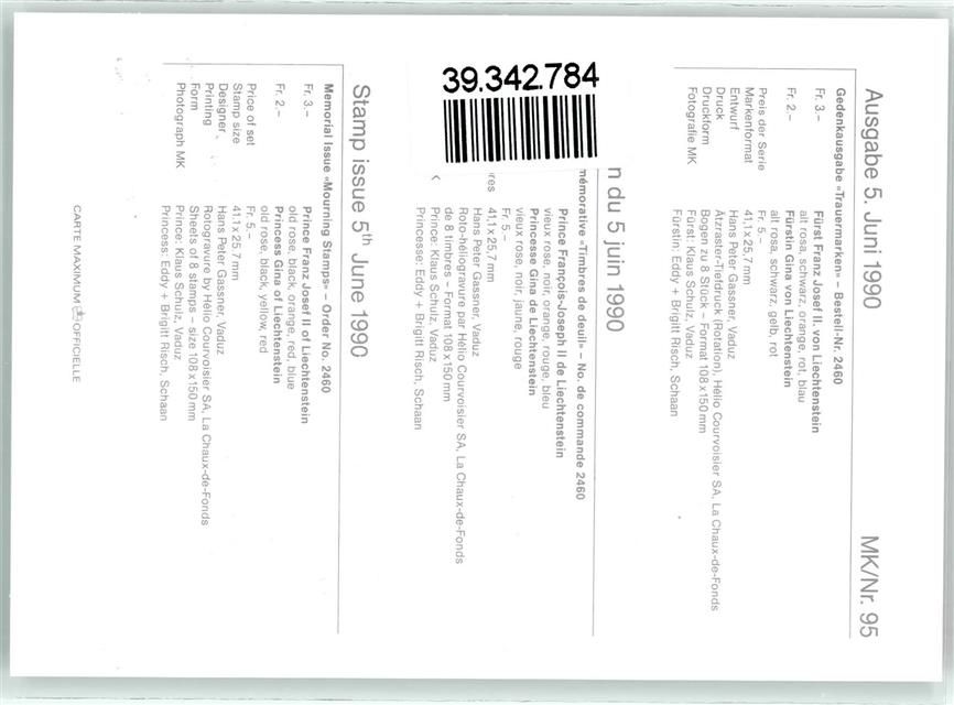 , Füst Franz Josef II. Gedenkausgabe Trauermarken Ausgabe 5. Juni 1980