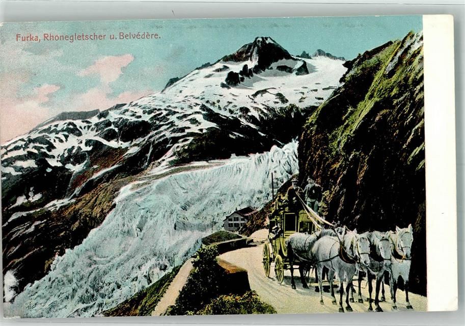 Furka Foto AK Postkutsche Rhonegletswcher Beldvedere