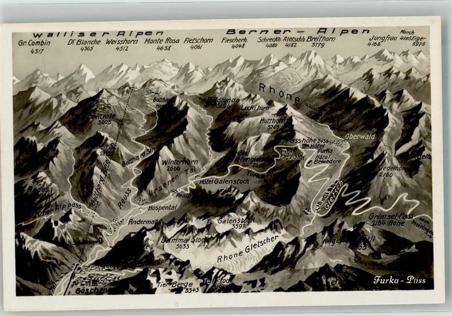 Furka Foto AK Vogelschau Furka-Pass